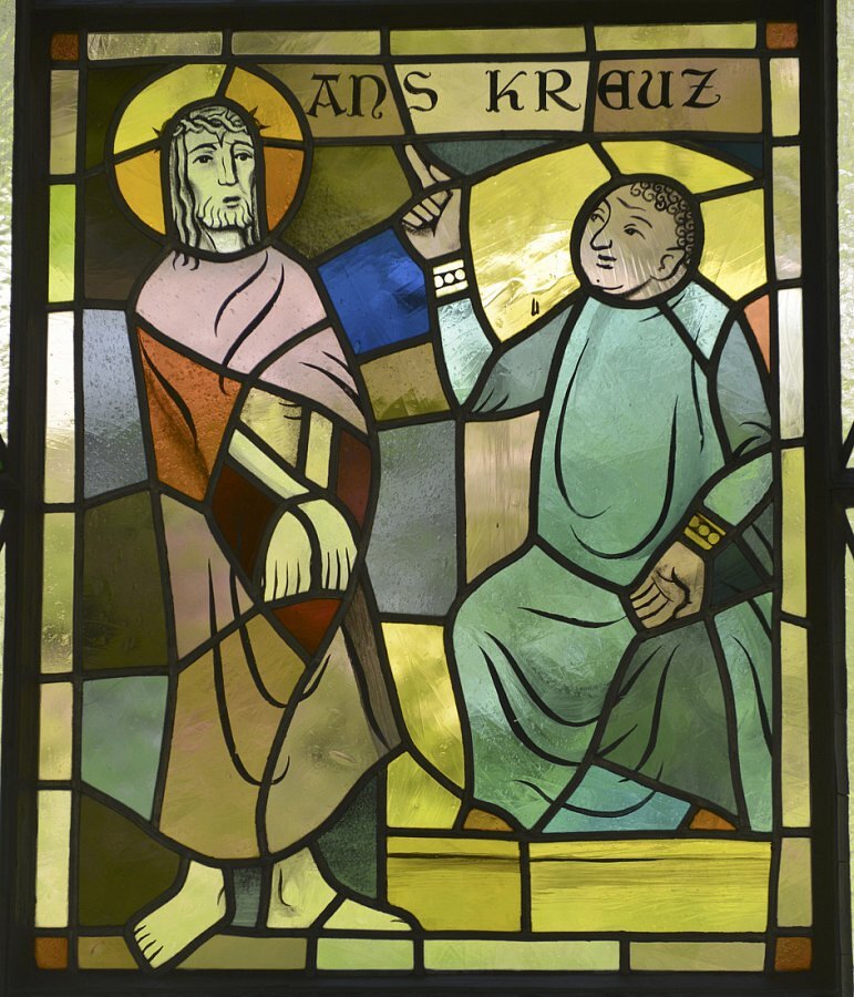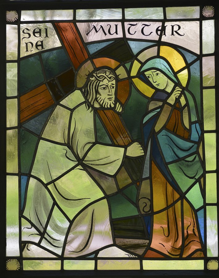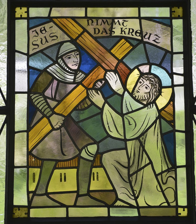 Glasmalerei Hubert Fritz 1955, Kreuzweg, bez., H. Fritz, Ausführung B. Sallaserra