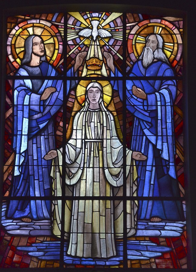Fritz Krcal Marienkrönung 1952 Tiroler Glasmalerei Gewidmet von Eichenbergern