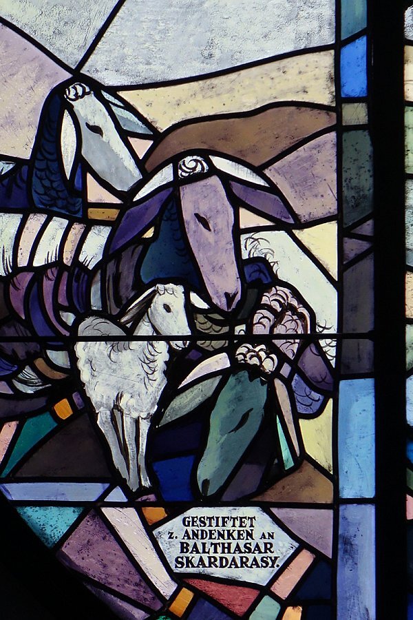 Glasfenster von Martin Häusle, 1936, Ausführung Tiroler Glasmalereianstalt, Innsbruck, Durchmesser 200 cm